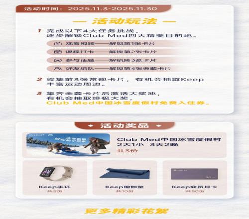 ClubMedXKeep雪季体能激活挑战赛来啦! Keep 2025-11-04 20:57:01 挑战 上一篇: 众安保险温暖护航2025杭州马拉松“百城助跑计划”服务再升级 下一篇: F1赛道上演青春接力,浙大摘得2025高百华东站桂冠