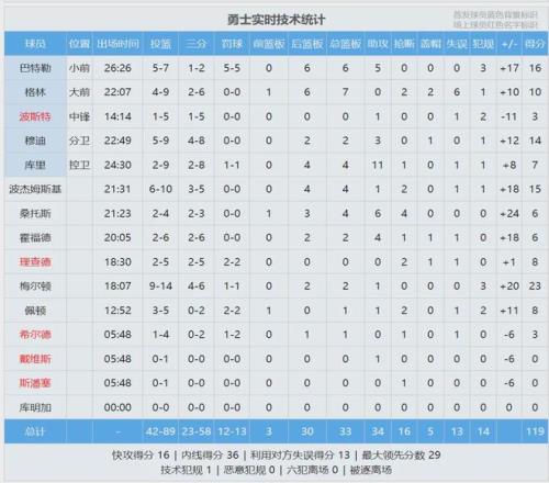 最后看看开拓者和勇士的比赛数据,说说你的感受: